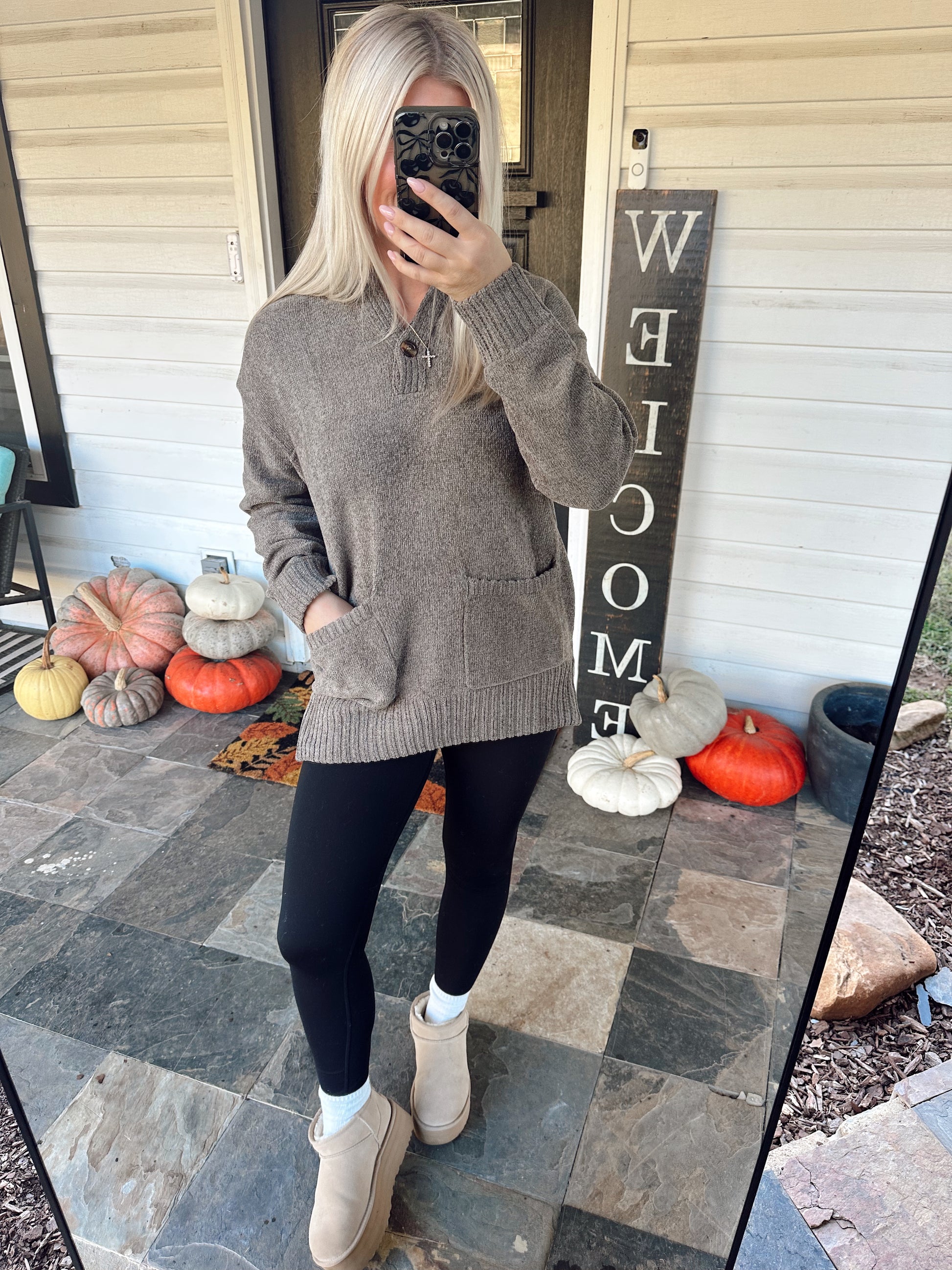 ONE BUTTON FRONT FLAP COLLAR RIBBED KNIT SWEATER PULLOVER